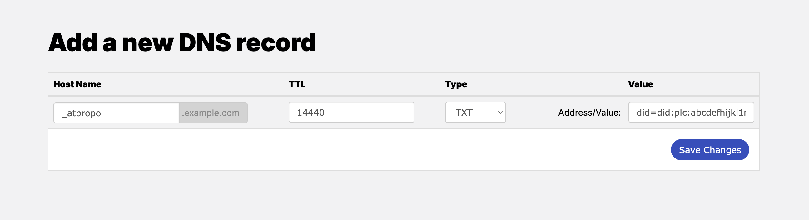 - Copy and paste the Host Name and Value from Bluesky.