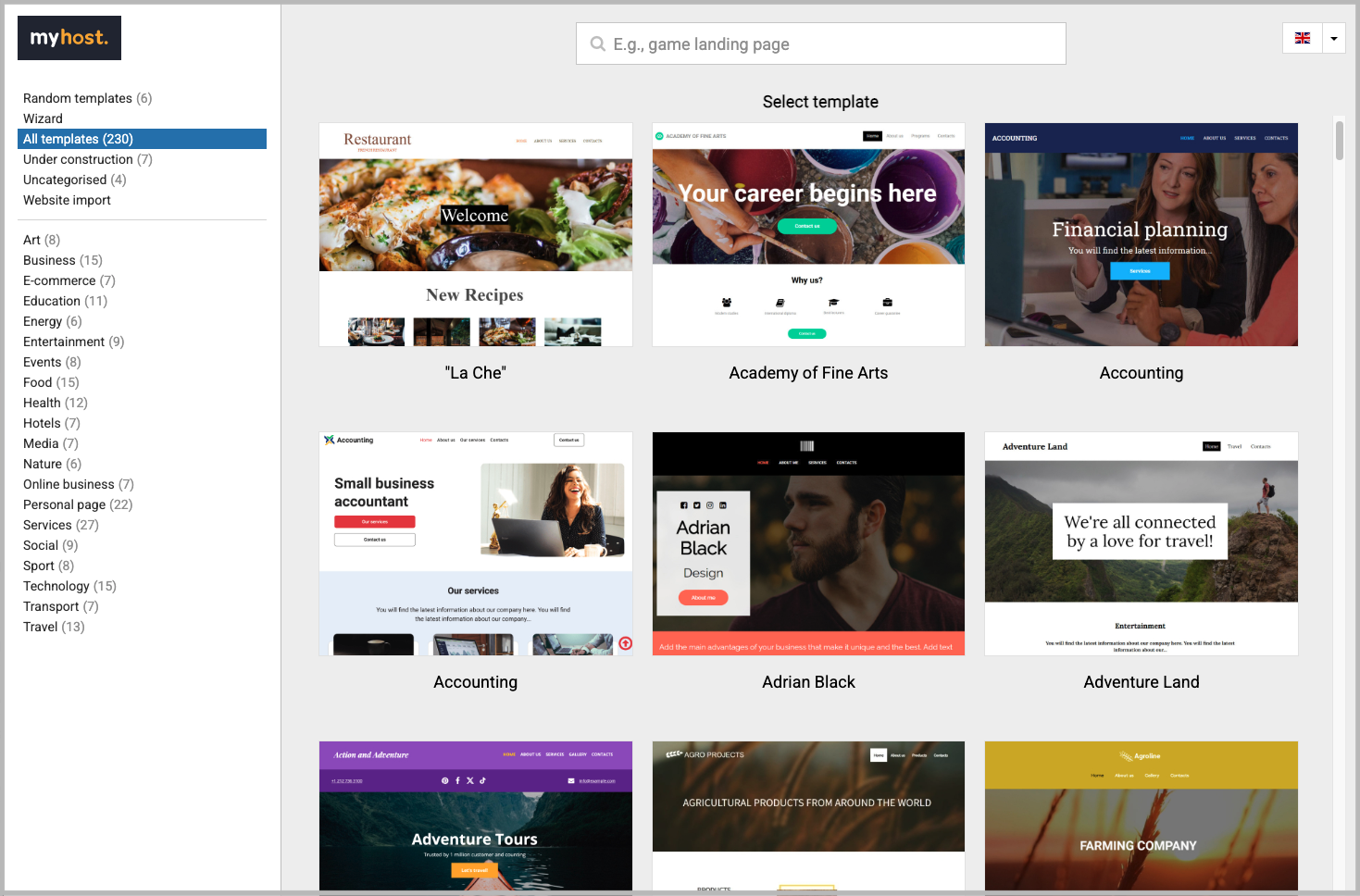 Website Builder includes a wide variety of pre-made templates that are customisable and responsive, so you don’t have to start from scratch. So, as my first step, I picked the template that best suited my chosen (fake) business’s character.